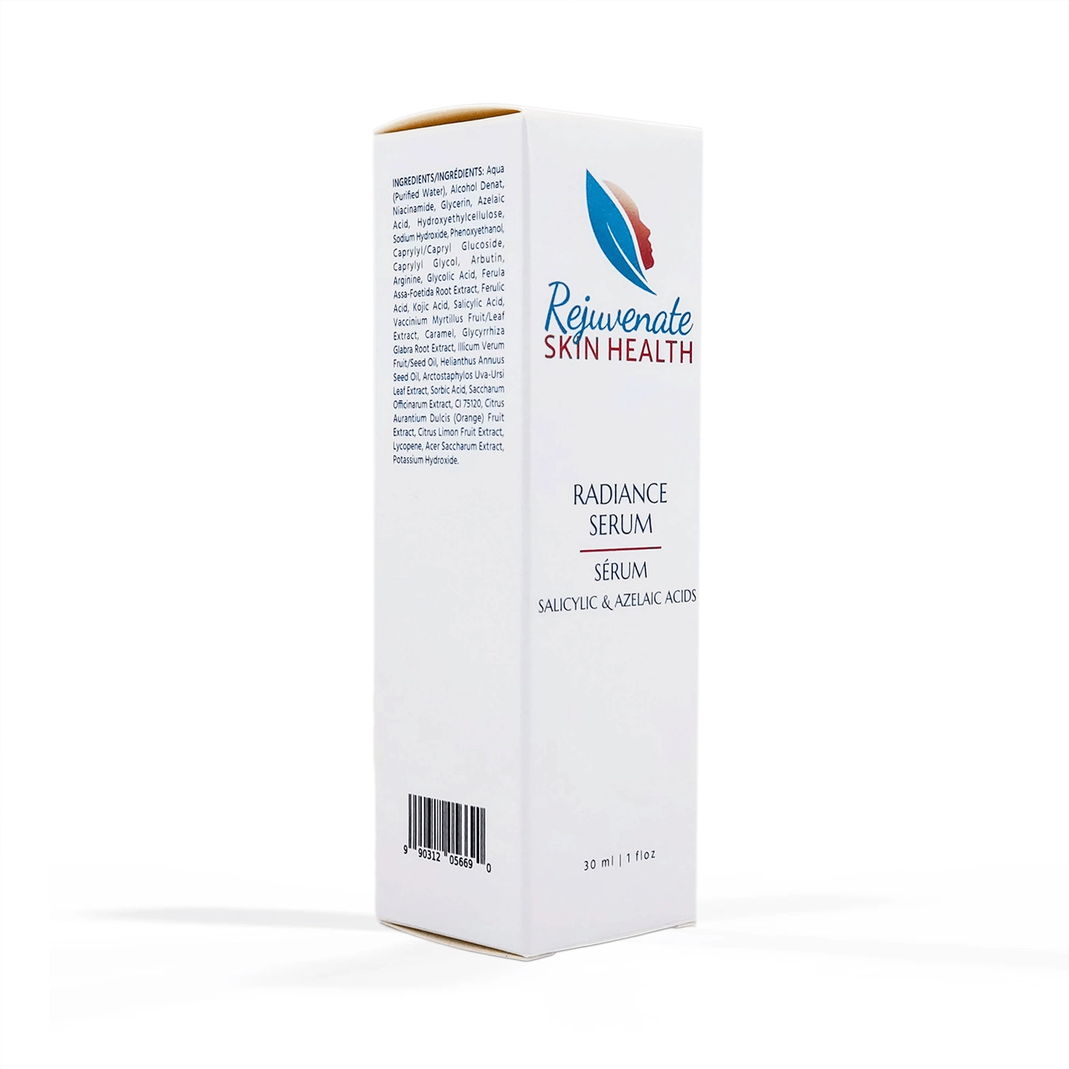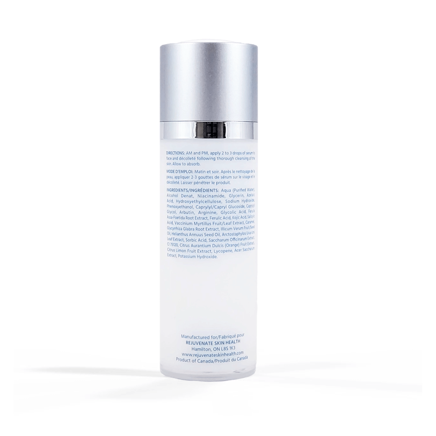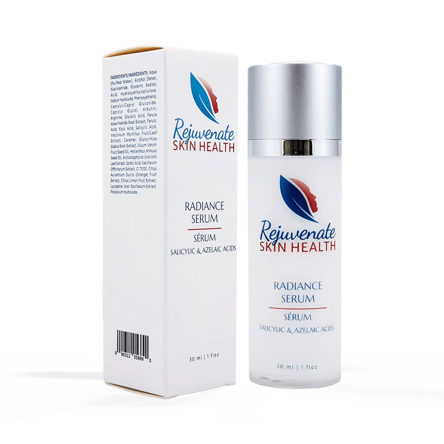 Find your most radiant skin with the Rejuvenate Skin Health Radiance Serum. This unique formula is specifically engineered to restore luminosity and clarity. It features a powerful, synergistic blend of brightening agents including Arbutin, Kojic Acid, and Azelaic Acid to target discoloration and promote a beautifully even tone. Gentle Fruit Acids and Salicylic Acid provide mild exfoliation to help fade existing spots and refine texture. To ensure your skin stays protected, we’ve included antioxidant Ferulic Acid, which masterfully defends against environmental stressors while delivering intensive moisture for a complexion that is not just brighter, but healthier.