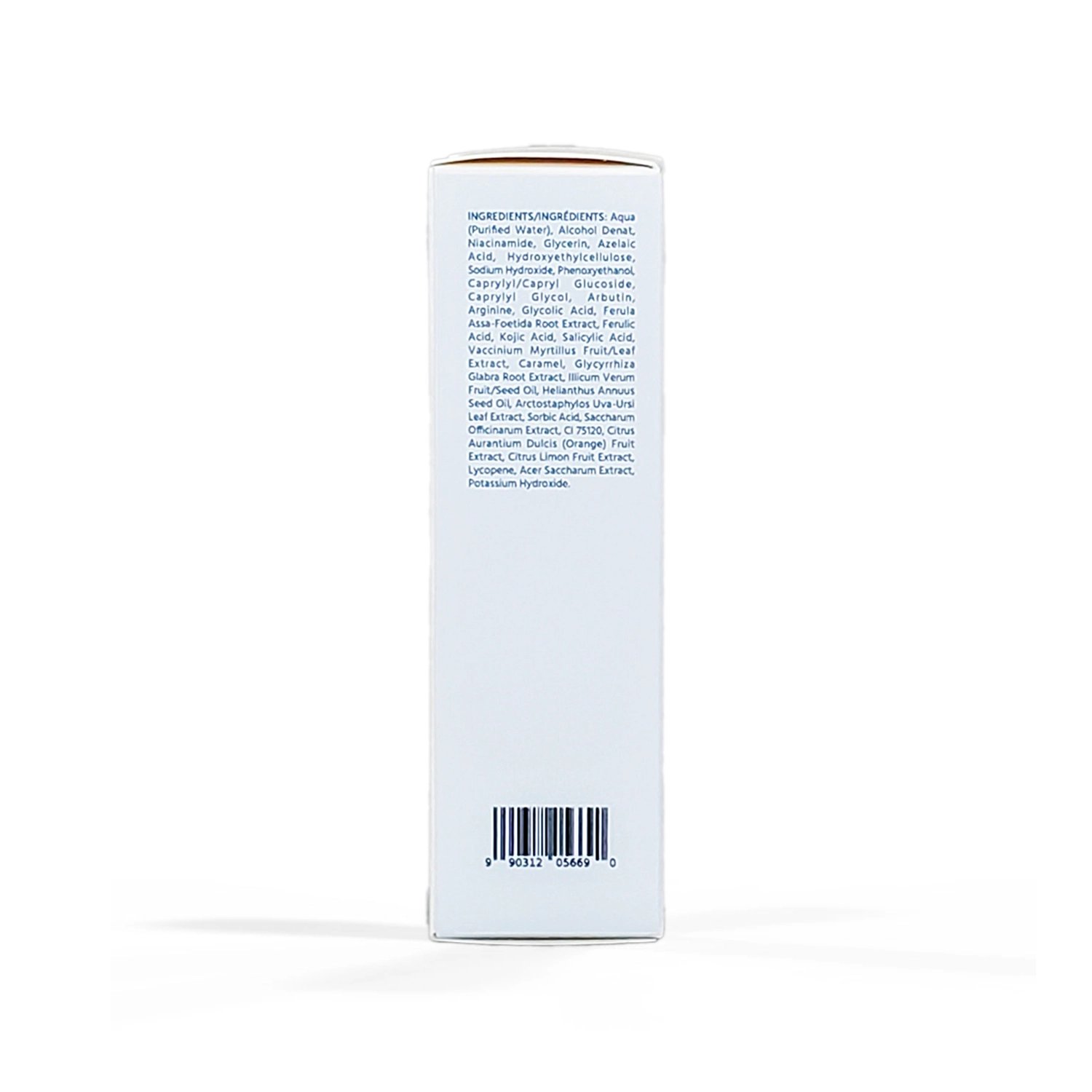 - A targeted blend of Arbutin, Kojic Acid, and Azelaic Acid works synergistically to lighten dark spots and address hyperpigmentation.